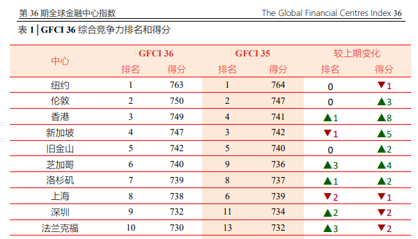 9月24日,備受全球金融界矚目的第36期《全球金融中心指數(shù)》報(bào)告(GFCI 36)出爐了。香港的總排名為全球第三位,在亞太區(qū)居首,重登亞洲第一金融中心的寶座。在前五名中,香港整體評(píng)分也是上升最多的,增加了8分。