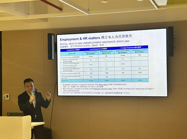 作為全球領先的企業服務專業機構Vistra卓佳及其集團成員RICHFUL瑞豐受邀參與本次活動。考察首日,Vistra卓佳越南辦公室的專家們為考察團深入解讀了越南營商環境中的關鍵實務考量,內容涵蓋投資政策、企業設立類型與流程、法定申報及合規義務、財稅及用工合規等重點議題,并針對企業常見痛點提供了切實可行的解決方案和建議。