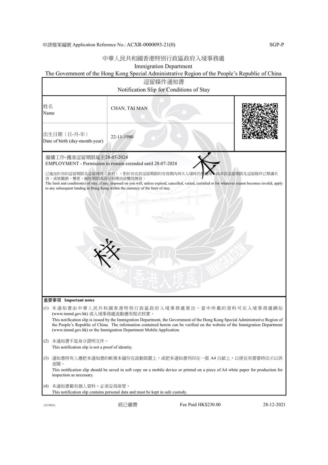 需要注意的是,根據入境處現行規定,所有延長逗留期限的申請人在遞交延期逗留申請及領取延期逗留標簽當天,申請人本人仍然需要身在香港。也就是說,電子簽證推出后,你僅是可以網上遞交申請及領取延期逗留標簽,并不意味著遞交申請及領取標簽當天你人可以不在香港!